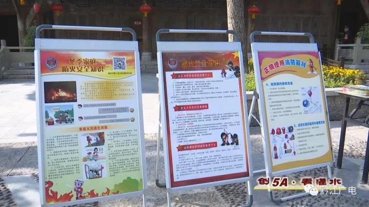 11月9日下午,記者在濯水景區(qū)風(fēng)雨廊橋入口處看到,區(qū)公安消防支隊和濯水專職消防隊的消防員通過接受現(xiàn)場咨詢、發(fā)放宣傳資料等形式向過往游客和當(dāng)?shù)鼐用衿占跋腊踩R,并結(jié)合實際案例,深入細(xì)致地給大家講解消防安全防范的重要性以及火災(zāi)逃生技能。針對景區(qū)木質(zhì)房屋多、耐火等級較低的特點,消防官兵重點提醒游客在景區(qū)內(nèi)要遵守相關(guān)規(guī)定,特別是不亂扔煙頭,以共同維護(hù)好景區(qū)的消防安全環(huán)境。