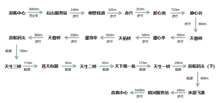 1.線路沿途乘車點有游客中心,古鎮(zhèn)服務(wù)站、水樂園服務(wù)站、后山服務(wù)站、暗河服務(wù)站、游客可根據(jù)自身體力選擇乘車點。