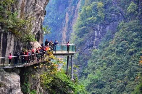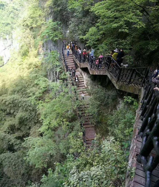 登上芭拉胡峽谷遠(yuǎn)眺,恰似一條綠色絲絳,將老城新城逢合在一起,繪就一幅名副其實的“城即景、景即城”的水墨丹青。峽谷寬80-100米,平均深度200米,最大落差500米;峽谷峭壁直立,崖壁大多與地平線成直角。沿著峽谷絕壁上808米長的空中棧道蜿蜒而上,其中有懸掛在500米高空的透明玻璃棧道,觀兩側(cè)峰巒起伏,鬼斧神工,體驗非凡的刺激。