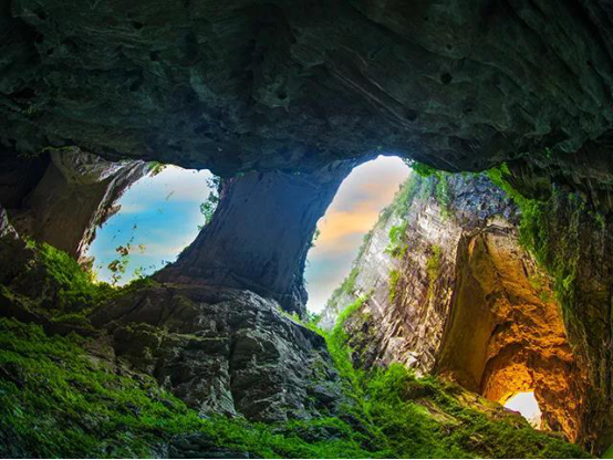 水上天生三橋在西部地質(zhì)景觀中比較少見,在黔江的蒲花暗河景區(qū),天生橋與暗河共生共榮,締造了罕見的絕世“天眼”。暗河水上天生三橋,低調(diào)的與水共生,難窺其全貌。橋面上,3座天生橋自成體系,隱藏在巍峨的群山中,其寬闊的路面均可供車輛通行。