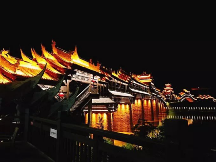 黔江濯水古鎮(zhèn)風雨橋橫跨于阿蓬江 上,長658米、寬5米,據說是世界最長的風雨廊橋。
