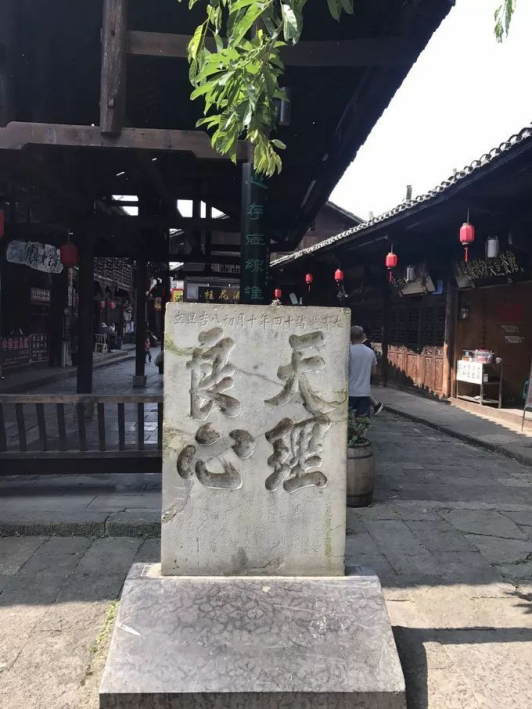 濯水古鎮(zhèn)街道中段立著一塊1米多高,寬約50公分的石碑。石碑立于清光緒十四年(公元1888年),距今已有121年的歷史。石碑刻著“天理良心”4個大字。