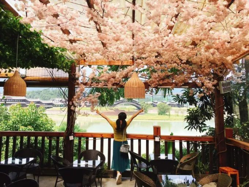 我們到的時候,感覺整個客棧只有我們一家游客,很安靜,比較適合小孩子入住。放下行李,我們趁天沒黑完,就帶小孩去逛了下風雨廊橋。