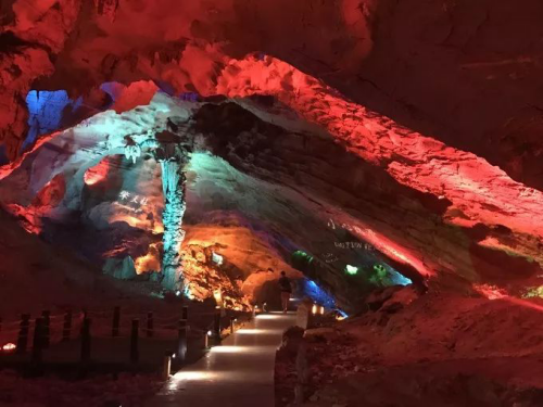 景區(qū)集2公里地下暗河、150米高3座水上天生三硚、10公里原始峽谷、1000余平方米赤穴溶洞等為一體的西部地質奇觀。是國家4A級景區(qū)。