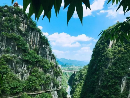 黔江 “芭拉胡”自然融合度高,氣勢宏大。登高遠望,恰似一條綠色絲絳,將老城 新城 逢合在一起,繪就一幅名副其實的“城即景、景即城”的水墨丹青。谷寬80-100米,平均深度200米,最大落差500米;