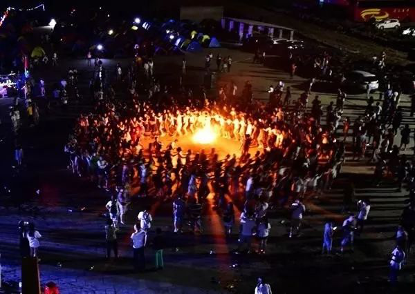 晚上7點(diǎn)多團(tuán)長(zhǎng)帶我們參加了土家族的篝火晚會(huì)