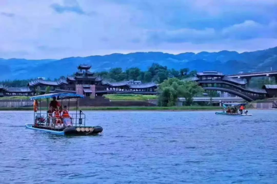 游古鎮(zhèn)老街,品土家美食,看后河古戲,聽蓬江水音。橫跨兩江(河)、氣勢恢宏的濯水風(fēng)雨廊橋被中國廊橋建筑研究會評為“世界第一風(fēng)雨廊橋”,全長658米,橋身為純木質(zhì)結(jié)構(gòu),分橋、塔、亭三部分,不釘不卯,充滿濃郁的土家風(fēng)情,橋身上的憑欄雕刻更是千姿百態(tài),栩栩如生。