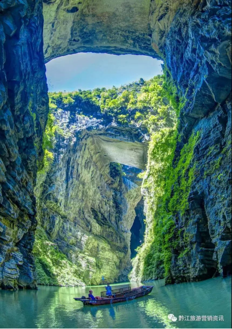 蒲花暗河景區(qū)距黔江城區(qū)28余公里,距濯水古鎮(zhèn)2公里,系阿蓬江的一條支流,暗河部分長約2公里。主要由天生三橋、黑龍?zhí)、赤穴、暗河、大峽谷等組成,景觀迷人,獨(dú)具魅力,為國家4A級旅游景區(qū)。景區(qū)赤穴溶洞內(nèi)氣溫全年保持恒溫22℃,有如“中央空調(diào)”。