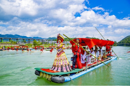 2020年8月23日11點(diǎn),“世界第一風(fēng)雨廊橋”——“重慶黔江濯水風(fēng)雨廊橋”下寬闊而清澈的阿蓬江面上,身穿民族服裝的“阿哥阿妹”俏生生地站在佩戴紅綢和大紅花的喜船上,在艄公的牽引下上演一場(chǎng)別開(kāi)生面的鵲橋相會(huì),吸引了來(lái)自全國(guó)各地的游客駐足打卡拍照。