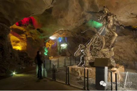 但固有文獻的記載卻使廩君和鹽水女神的后裔們很不順心遂意,范曄所撰的《后漢書·南蠻西南夷列傳》云:“鹽水有神女謂廩君曰:‘此地廣大,魚鹽所出,愿留共居。’廩君不許,鹽神暮輒來取宿,旦即化飛蟲,與諸蟲群飛。掩蔽日光,天地晦冥,積十余日,廩君不知東西所向七日七夜,使人操青絲以遺鹽神曰:“纓此即相宜,云與女俱生,宜將去!}神受而纓之,廩君即立陽石上,應青纓而射之,中鹽神,鹽神死,天乃大開。廩君于是君乎夷城!备缫恍┑奈鳚h時代劉向所撰《世本·氏姓篇》所記,也是如此。是的,洞內(nèi)巖壁上有那么多密集如云的石花,難道這就是當年鹽水女神布下的飛蟲陣的遺跡么?據(jù)學者考證,廩君與鹽水女神生活的年代,是與遠古治水的大禹同時或稍晚一些時候,即使再晚,也應在夏商時期。試想,那時的史實無文字記載,全憑原始部落口耳相傳,正如長江三峽中的神女一樣,歷來有兩個版本,宋玉的《高唐賦》說她是楚襄王的情人,而三峽民間的版本,卻說她是瑤池下凡的瑤姬仙子,來人間助大禹王疏通洪水,時至今日仍在為峽中船夫?qū)Ш。同樣的,廩君與鹽水女神的結(jié)局,也有兩個版本,除了范曄和劉向的文人版,還有巴族后裔們的民間版。在當年的夷水上下,祭祖的廩君廟有數(shù)十座之多,在這些祖廟中,廩君像側(cè),皆塑有一尊名曰“德濟娘娘”的金身。德濟娘娘即鹽水女神,言其德澤惠及后人,后裔們認她為老祖婆,讓她同老祖公并坐一處,配享巴族子孫的人間煙火。此說有由來嗎?有。應該感謝濯水鎮(zhèn)的民間傳說整理者和景區(qū)設(shè)計者們,他們在描述了上古史話之后,又緊扣百姓的心理,對上古那場絕世愛情的哀怨與凄美,重現(xiàn)了流傳千載的民間版本的故事細節(jié),塑像下的碑文曰:“……廩君贈青絲予鹽神,表示永結(jié)合好。鹽神欣然受諾,便將青絲系身,廩君拉弓射向青絲,鹽神傷懼,化蝶離去。天地豁然開朗,后廩君沿夷水而下夷城建都。逝后化天神駕白虎,尋女神于赤穴重逢,終釋前嫌,結(jié)為伉儷!