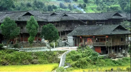 當(dāng)背靠青山,面對綠水是其最佳選擇,屋基前低后高。所以木結(jié)構(gòu)的“吊樓”式建筑應(yīng)運而生樓外有“耍子”安有各式各樣的木欄,保留著土家先民“干蘭”式居屋的遺俗
