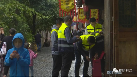 在濯水景區(qū),民兵應急分隊的民兵們從早上8點開始,就穿梭在各個景點,協(xié)助景區(qū)管理部門維持秩序、及時排查消除各類隱患,為游客提供便民服務(wù)。