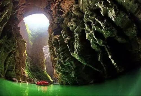 來(lái)暗河感受三天兩夜穿越之旅。一艘艘的游船躺在水面上,水綠得像是碧玉那般。