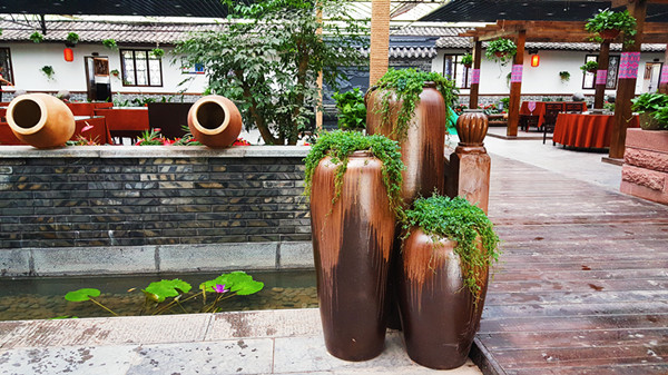 蒲花園阿蓬記生態(tài)餐廳是渝東南地區(qū)規(guī)模最大、規(guī)格最高的民族特色生態(tài)餐廳。其建筑將傳統(tǒng)土家吊腳風(fēng)情與休閑生態(tài)園林進(jìn)行完美結(jié)合,古色古香的雕花窗戶,青瓦青磚的四合院內(nèi)景,輔以綠色生態(tài)植被和多彩花卉,整個(gè)餐廳就是一座“大觀園”。青磚黛瓦、廊回徑曲、吊檐窗花、小橋流水……