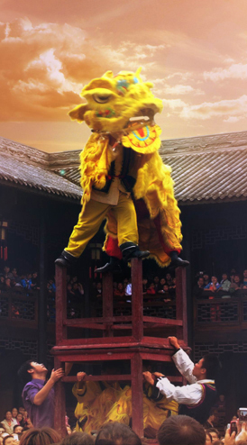 板凳龍舞在黔江流行較廣,是土家族群眾的傳統(tǒng)喜慶節(jié)目。每逢新春佳節(jié),土家群眾都喜歡玩板凳龍舞。在一根..
